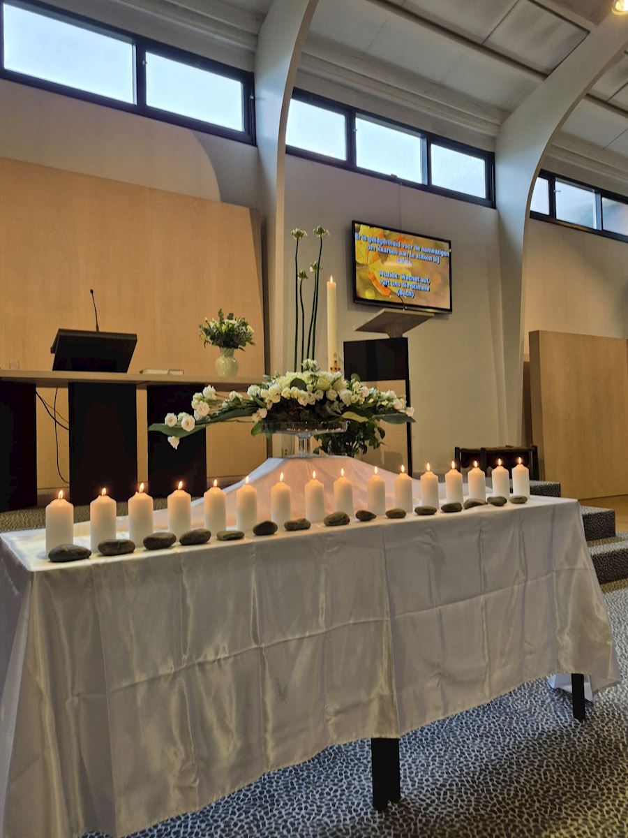 ![]() In de laatste zondag van het kerkelijk jaar op 23 november j.l., herdachten we de gemeenteleden die ons in het afgelopen jaar zijn ontvallen: ![]() |
